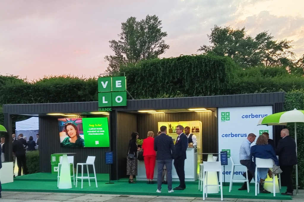 Event Amerykańskiej Izby Handlowej (AmCham) w Arkadach Kubickiego, na którym zapewnialiśmy pawilon dla Velo Bank-u.