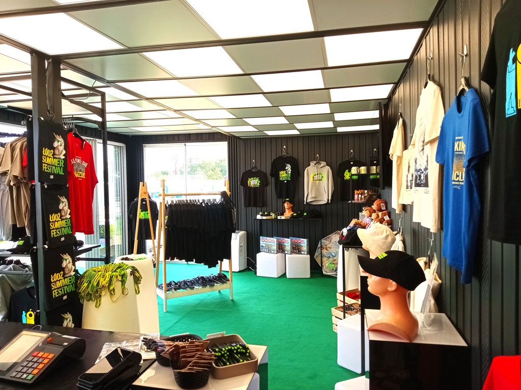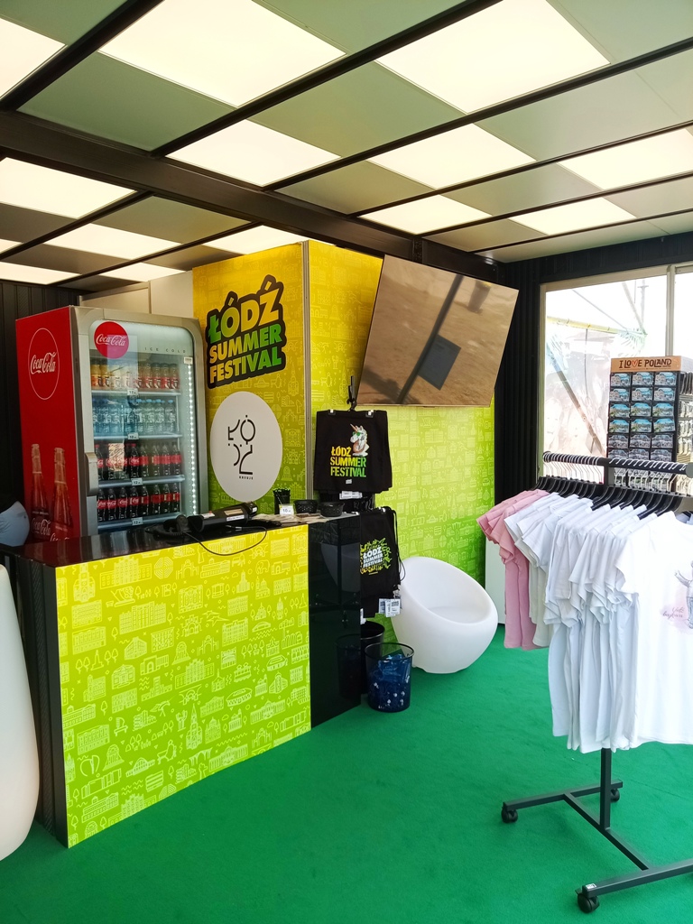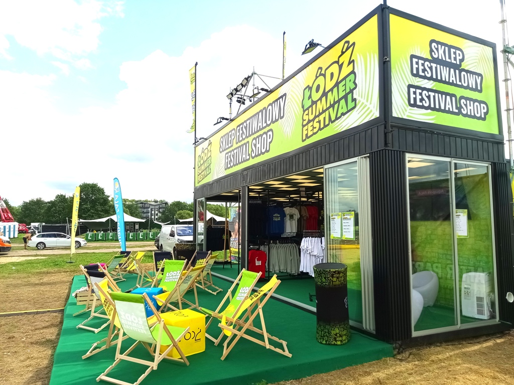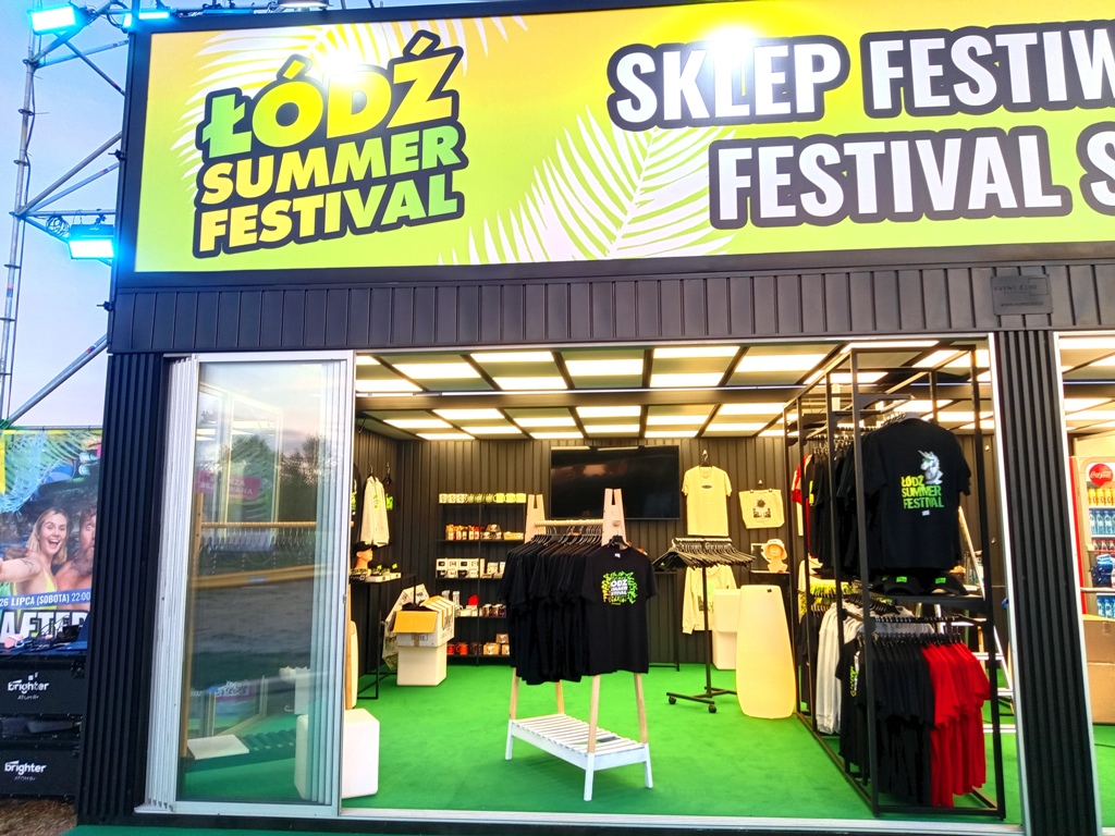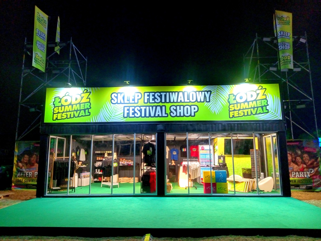 Prezydent Łodzi – na sklep festiwalowy – wybrał nasz pawilon o powierzchni 50 m 2. Z uwagi na fakt, że znaczna część eventu ma miejsce wieczorem i nocą, podświetliliśmy fryz.