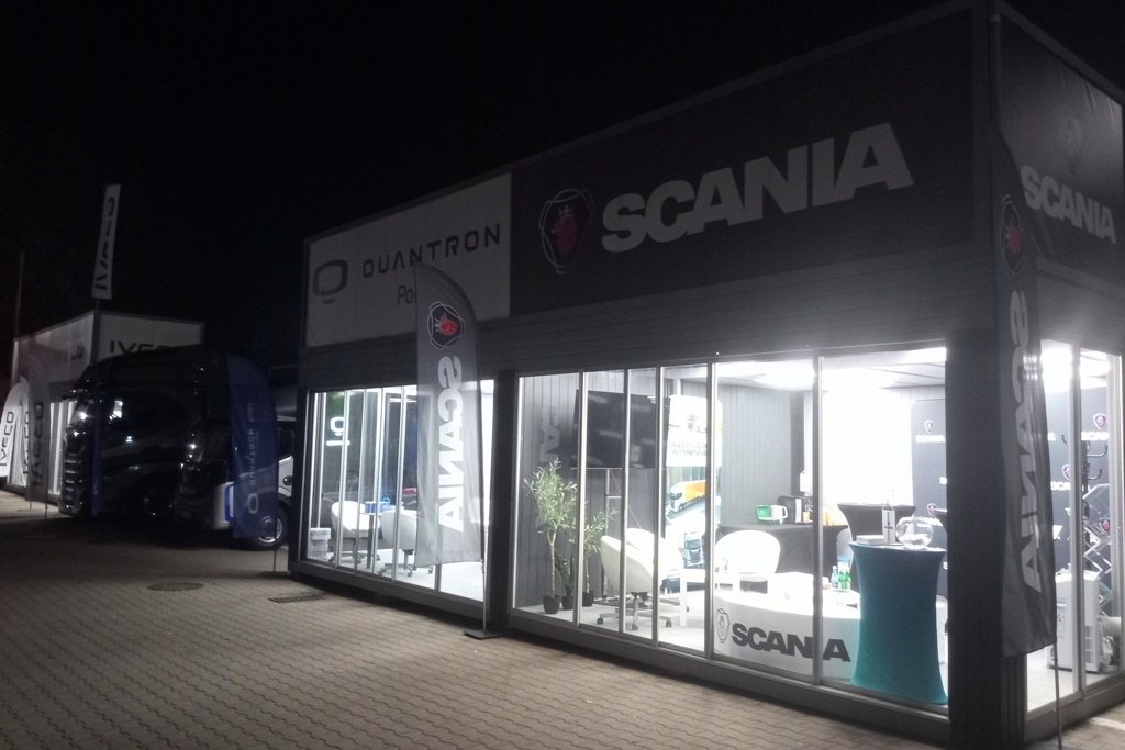 Wykonaliśmy stoiska targowe zewnętrzne dla 4 firm: SCANIA, IVECO, RENAULT, QUANTRON.